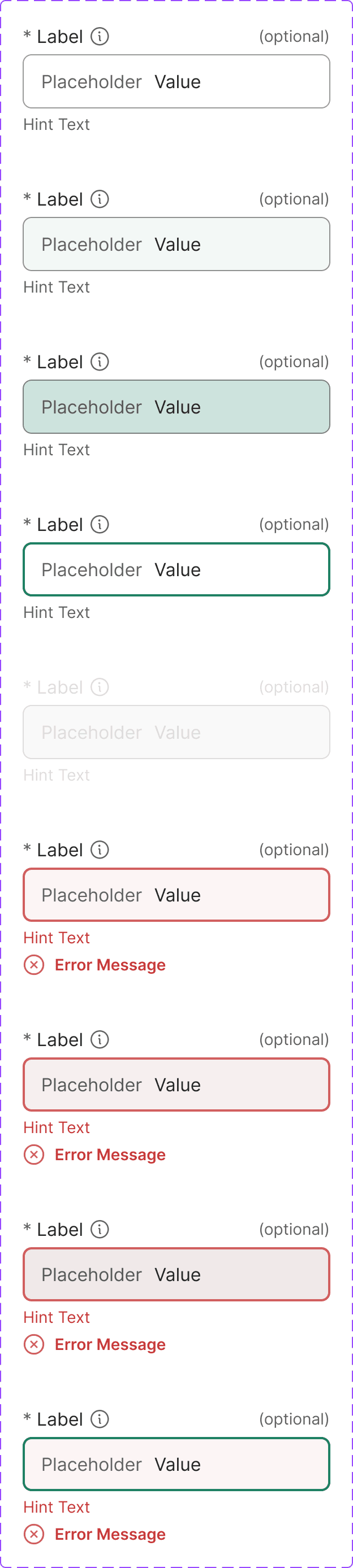 Every component came with clearly defined states: default, hover, pressed, focus, and disabled. I built each one to be visually consistent and easily swappable in Figma using Variants.