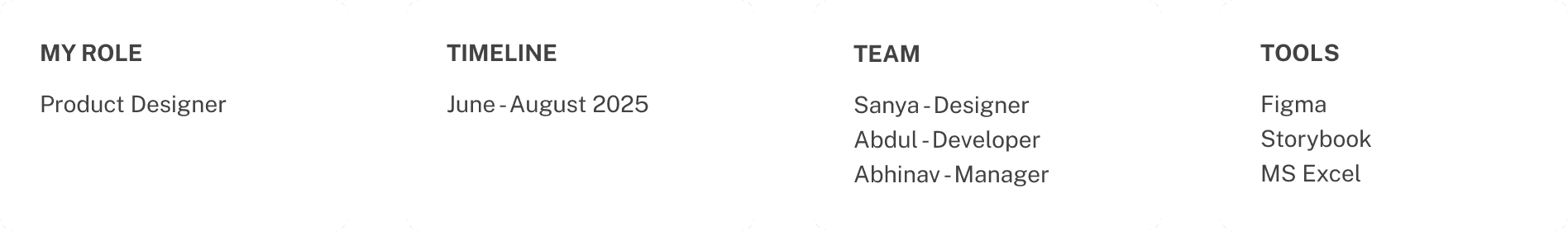 There was no design infrastructure in place. No color system, no components, no documentation. As the only designer, I had full ownership but no guidelines to work from, so every screen was a fresh decision. It didn't take long to notice design and development drifting apart, with inconsistencies piling up faster than they could be fixed.