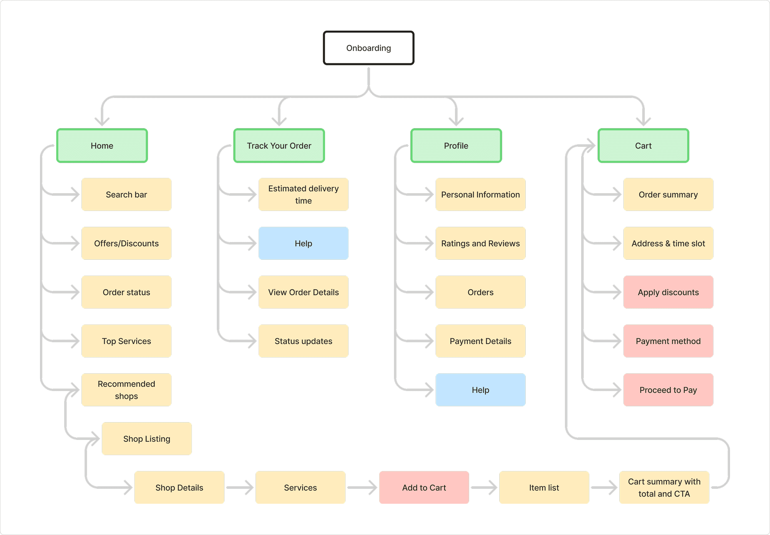 Mapped the main screens to visualize how users will move through the app