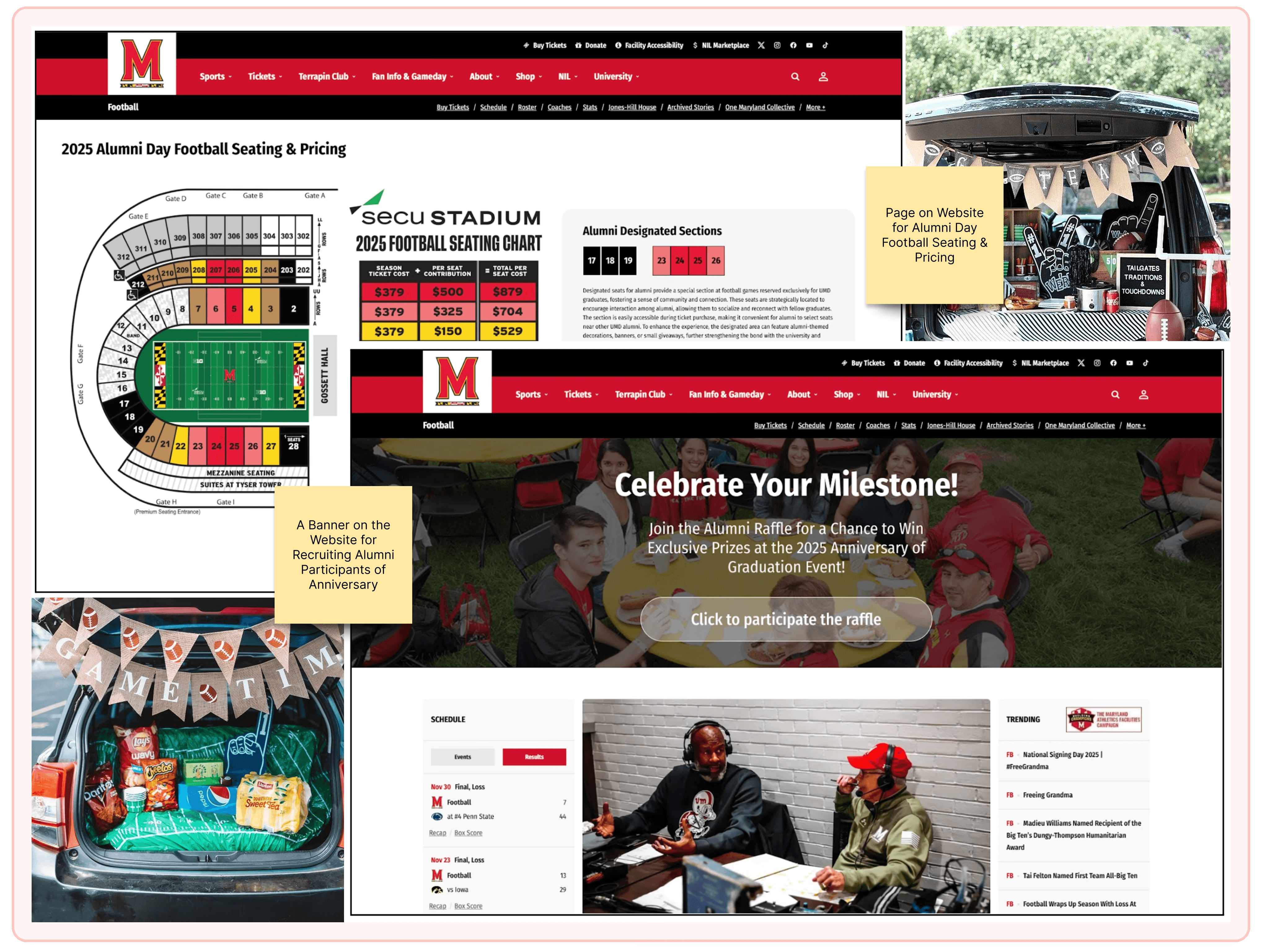 UMD football games connect alumni to their student days through school spirit, nostalgia, and community. Focusing on these identity-driven elements allowed us to create meaningful and personal engagement strategies